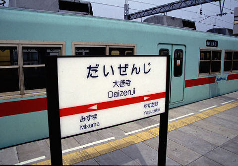 この付近は1時間に特急、急行、普通が上下2本ずつ走っている。効率的な撮影ができる。 行ったりきたり端間から普通に乗り、小郡で急行に乗り換えて二日市まで来た。ここで一度下車。実はこの紀行は幻の700形を撮影することも兼ねている。この700形、4両編成がたった1本しかない試作的要素の電車である。久留米に行く途中にそれっぽいのとすれちがった。西鉄の駅で無料で配られているダイヤグラムをたぐっていくと、ちょうどこの辺りで撮影できるはずだった。が、走ってきたのはナンの変哲もない5000形だった。すれ違った場所と時刻から判断したのだがそもそも見間違いだったようだ。