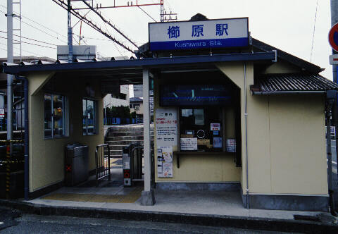 久留米に着き、以前行ったことの大砲ラーメンで昼飯にした。土曜日のためか店内はすいていた。東京のより一回り小さい餃子のついたセットを注文し、さらに替え玉を追加した。 五穀神社に近いこの大砲ラーメンからは久留米駅にも櫛原駅にも歩ける距離である。今日は櫛原に行くことにした。 カードで混乱途中のCoCoストア(コンビニ)でロードマップを立ち読みして道筋を確認し、ペットボトルのお茶を買って櫛原駅を目指す。10分と歩かないうちに駅に到着した。まずは数枚5000形やら8000形やらの写真を撮る。ついで駅舎を激写。第1回紀行のときは時間の関係で櫛原駅の駅舎を撮影できなかったのだ。
