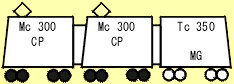 2両固定編成にMcを増結した3両編成です。Mc(304、305、310、311)は汽車製造製、Tc(355、361)は日本車両製で、304のみ1948年に、他は1949年に製造されました。304のみ17m車体、他は18m車体です。
