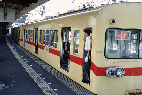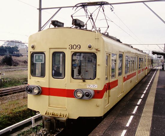 ワンマン線区宮地岳線用に、大牟田線から転用された車両です。
