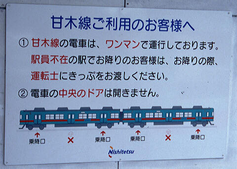甘木線ワンマンは駅に係員を配置して乗車券発売や運賃収受を行う、最近の大手私鉄の支線区ワンマンと同じ方式です(ちなみにこの方式の草分けは同社の宮地岳線)。