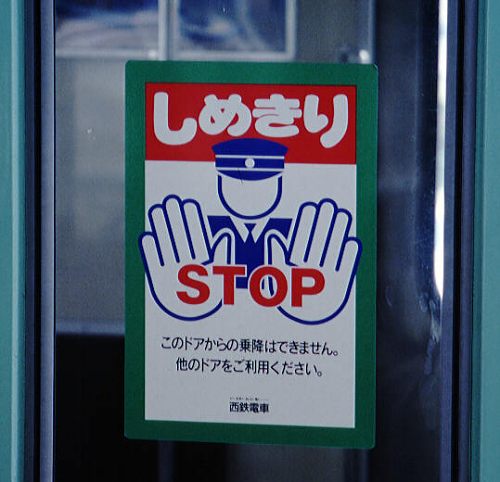 開扉は運転士が駅到着のたびに立ちあがって行います。閉扉も同様ですが車掌スイッチを扱う前にベルを鳴らして注意を喚起します。このベルは車体妻面につけられていて、鳴動音は昔懐かしい「ジリジリジリ・・・」というものです。