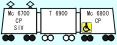 デビュー時はMc1(6700)-Mc2(6800)の2両編成でしたが、1999年に中間車T(6900)が挿入され3連化されました。