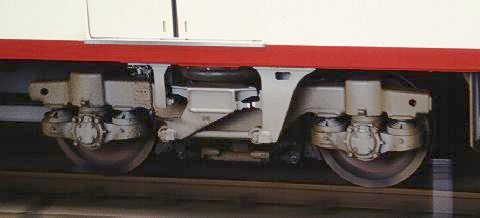 KW-60A形(Mc、M車)/KW-61A形(Tc車用)台車円筒ゴム軸箱の空気バネ台車です。