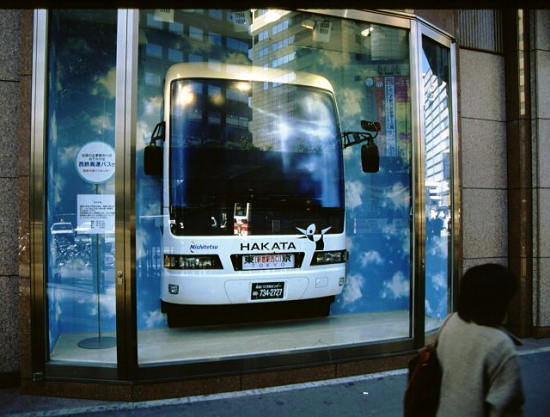 西鉄福岡駅の天神バスセンター近くのショウウインドウには、一時期ほぼ実物大のはかた号の模型が展示されていました。