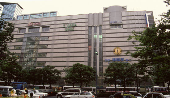 西鉄が威信をかけて作り上げた大規模ショッピング施設「ソラリアステージ」とその下をごちゃごちゃと渋滞するバス軍団(笑)。
