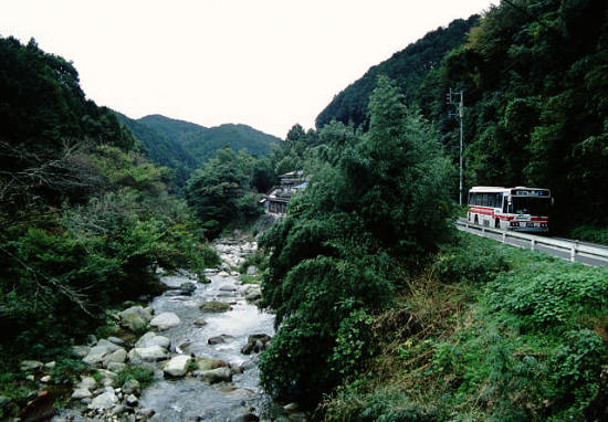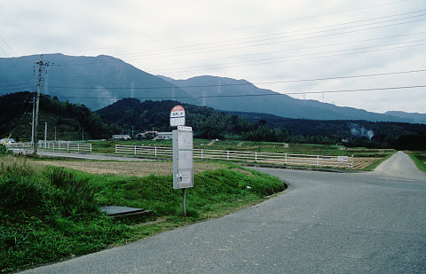 椎原川(しいばるがわ)に沿って山を分け入ったところにある椎原(しいば)バス停。