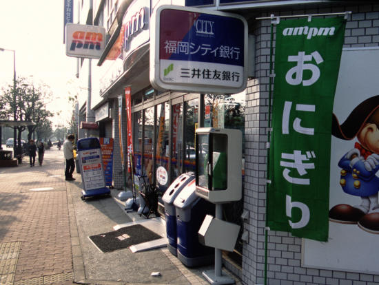 大濠公園近辺をウロウロしたあと、小腹がすいたので公園北側の明治通を渡ったところのラーメン屋さんに入る。いつもは1日3、4杯くらいはラーメンを食べるのだが(普通、だよねぇ・・・)、今回はいたって少なく2日で3杯。う〜ん、これではいかんな(^_^;)。 コンビニ