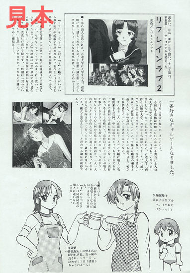 なお、同誌にはこのほか、リフラブとギャルゲーの双璧をなす「ときめきメモリアル2」をはじめ「火魅子伝 〜恋解〜」「季節を抱きしめて」「新世紀ロボット戦記 ブレイブサーガ」などゲーム評が多数掲載されています。