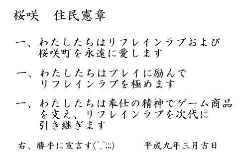 記念して定められた住民たちの誓い。もちろん、でたらめです(^_^;)