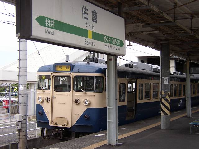 ここに紹介する施設・地域は、リフラブのモデルとなっただけのものであり、直接にリフラブおよび(株)リバーヒルソフトと関係があるわけではありません。 リフラブ屈指の名場面、福岡の実家に帰る朋美を桜咲駅で見送るシーンに出てきた電車を追ってみました。場所は千葉県のJR佐倉駅(笑)。わざわざ行ってきました。 113系電車と佐倉駅。つい数年前までこの形式の電車は地方のいたるところでみかけることが出来ましたが、今の首都圏では都心部ではあまり見かけなくなりました。逆に千葉県のJRローカル線は今でもこの形式の独壇場です。